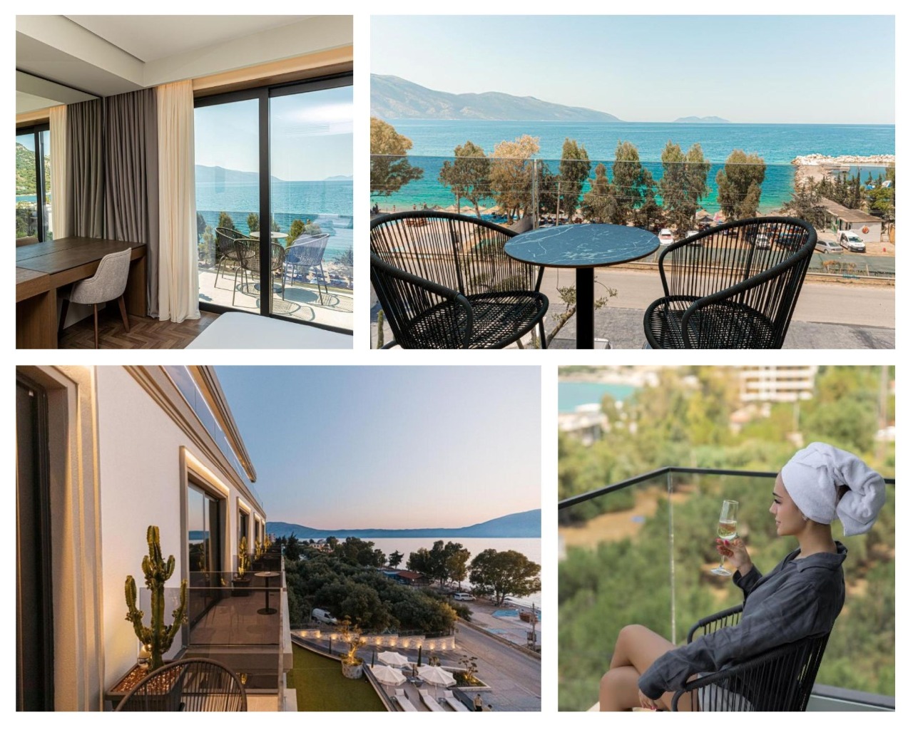 A hotelből és a közeli strandokról lélegzetelállító panoráma nyílik a Karaburun-félszigetre, amely Albánia egyik legvadregényesebb, érintetlen természeti területe. A látvány minden napszakban más arcát mutatja: reggel békésen csillog, naplementekor pedig aranyfényben úszik.