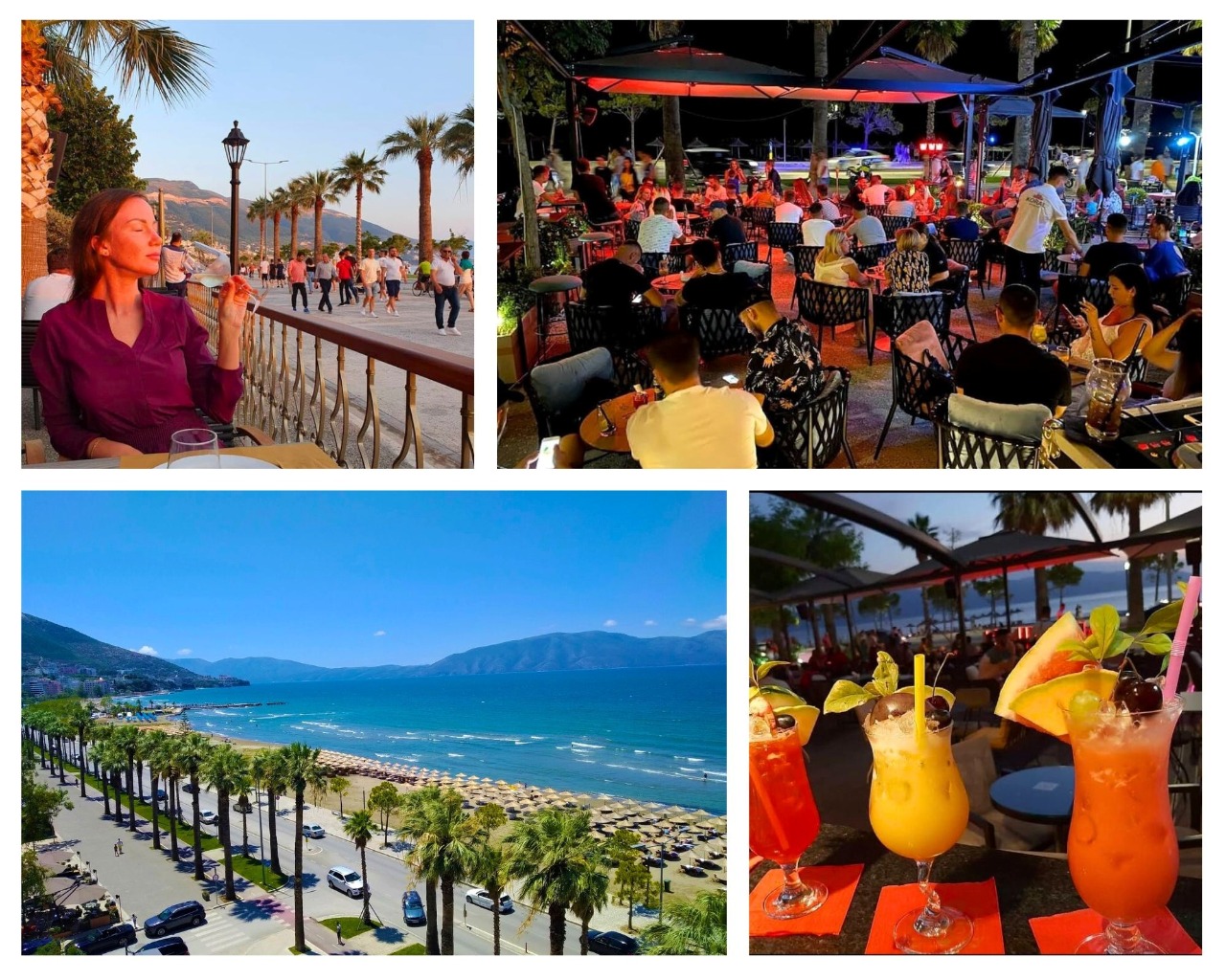 Napközben jöhet az albán gasztro: friss tengeri kaják, grillezett finomságok, helyi ízek, hideg italok. Délután pedig beach bárok, laza zene, jó hangulat, napsütésben üldögélés vagy egy kis party vibe.